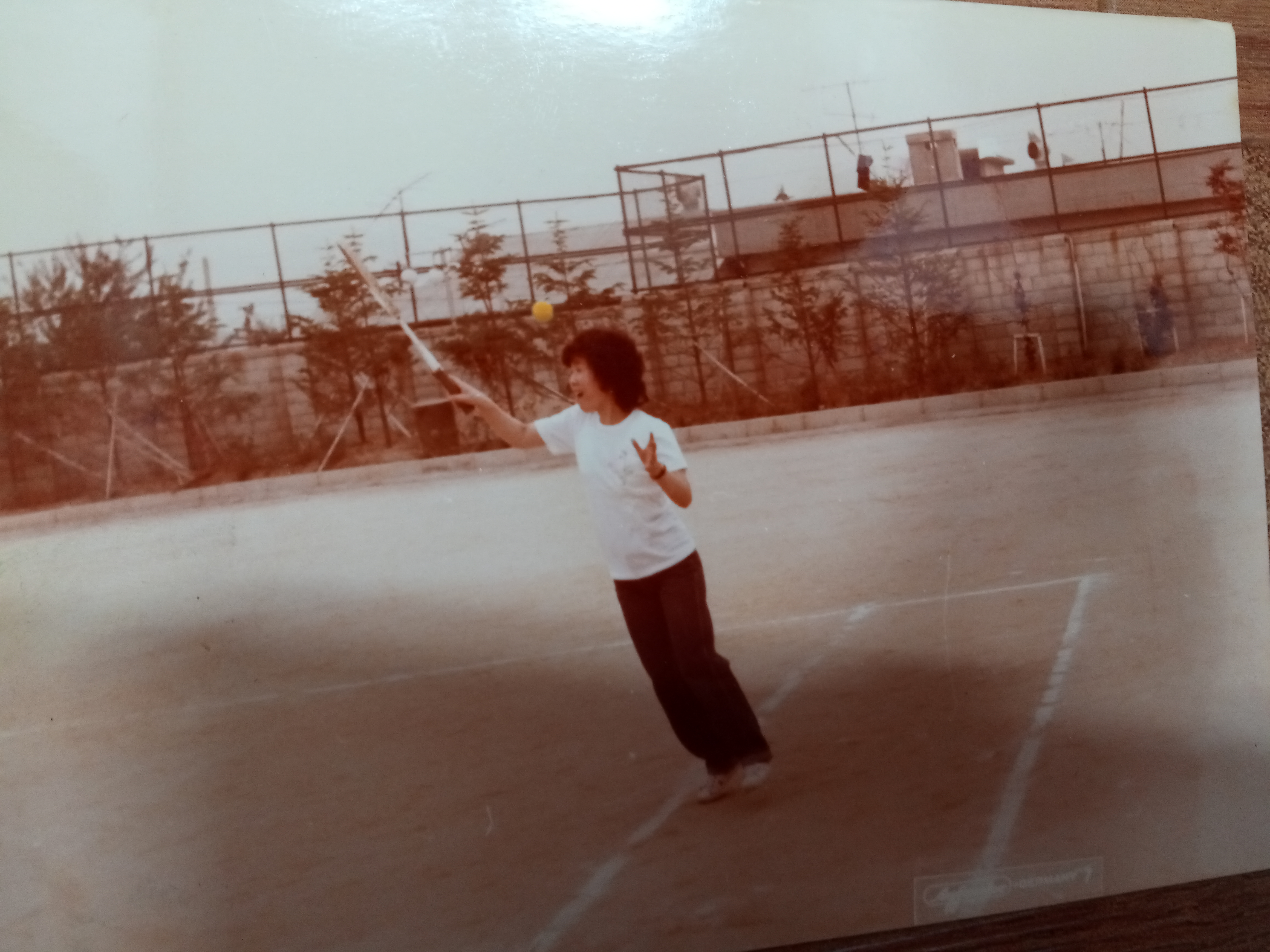 - 사진: 탁구를 배웠기에 테니스 운동도 쉽게 배울줄 알았다. 저 테니스 치는 폼을 어찌할꺼나? 사진을 보면서 운동에 소질이 없음을 깨달았다.