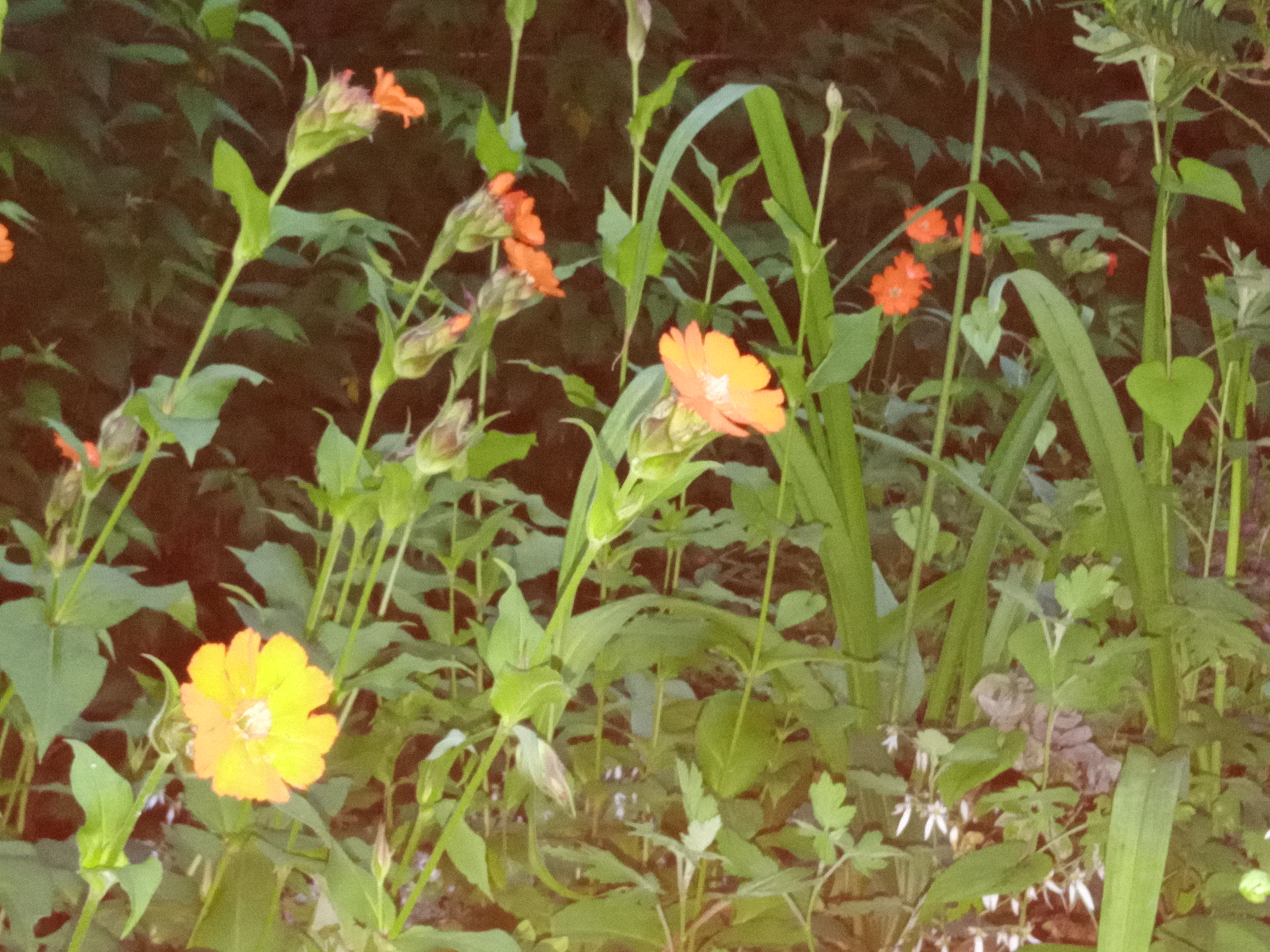 ♥사진설명-동자꽃=참동자꽃/백합이 핀 아랫쪽에 주황색 동자꽃이 피었다. 하늘거리는 줄기 끝에 꽃들이 살짝 미소를 머금고 있다. 서식-산지의 숲속 산골짜기