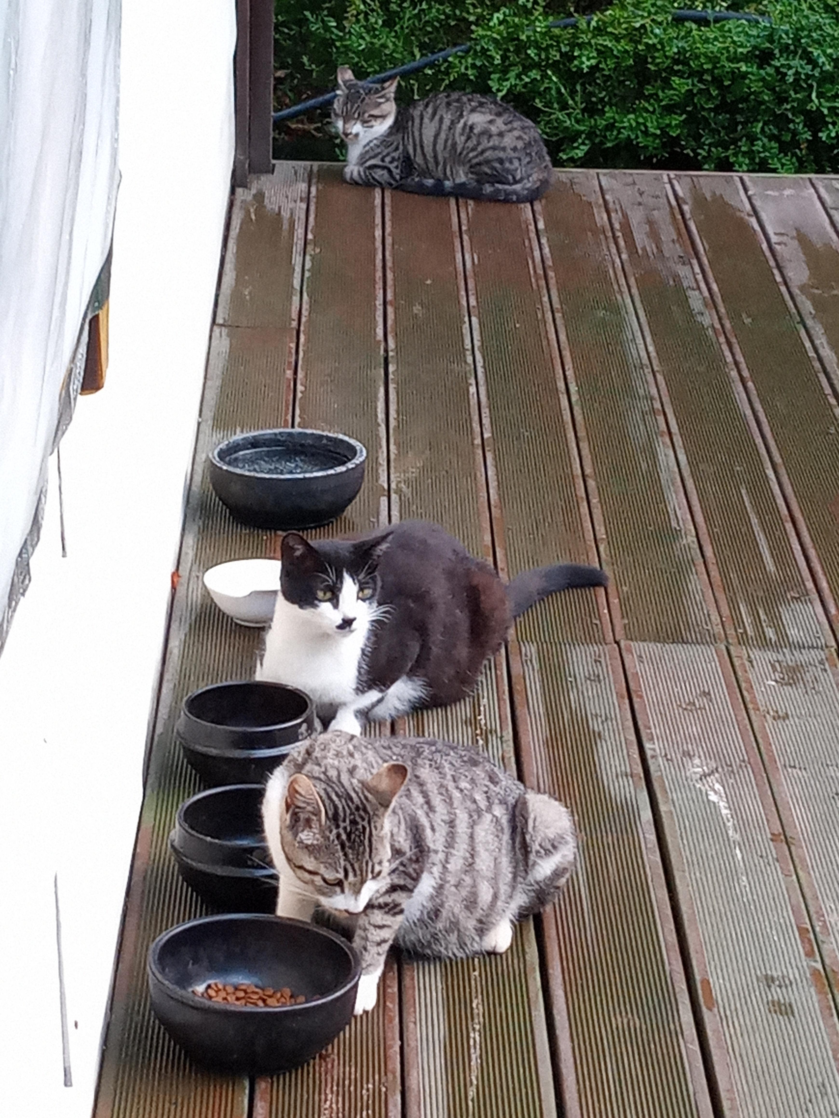 길고양이 들은 아직도 경계가 심한 편입니다.