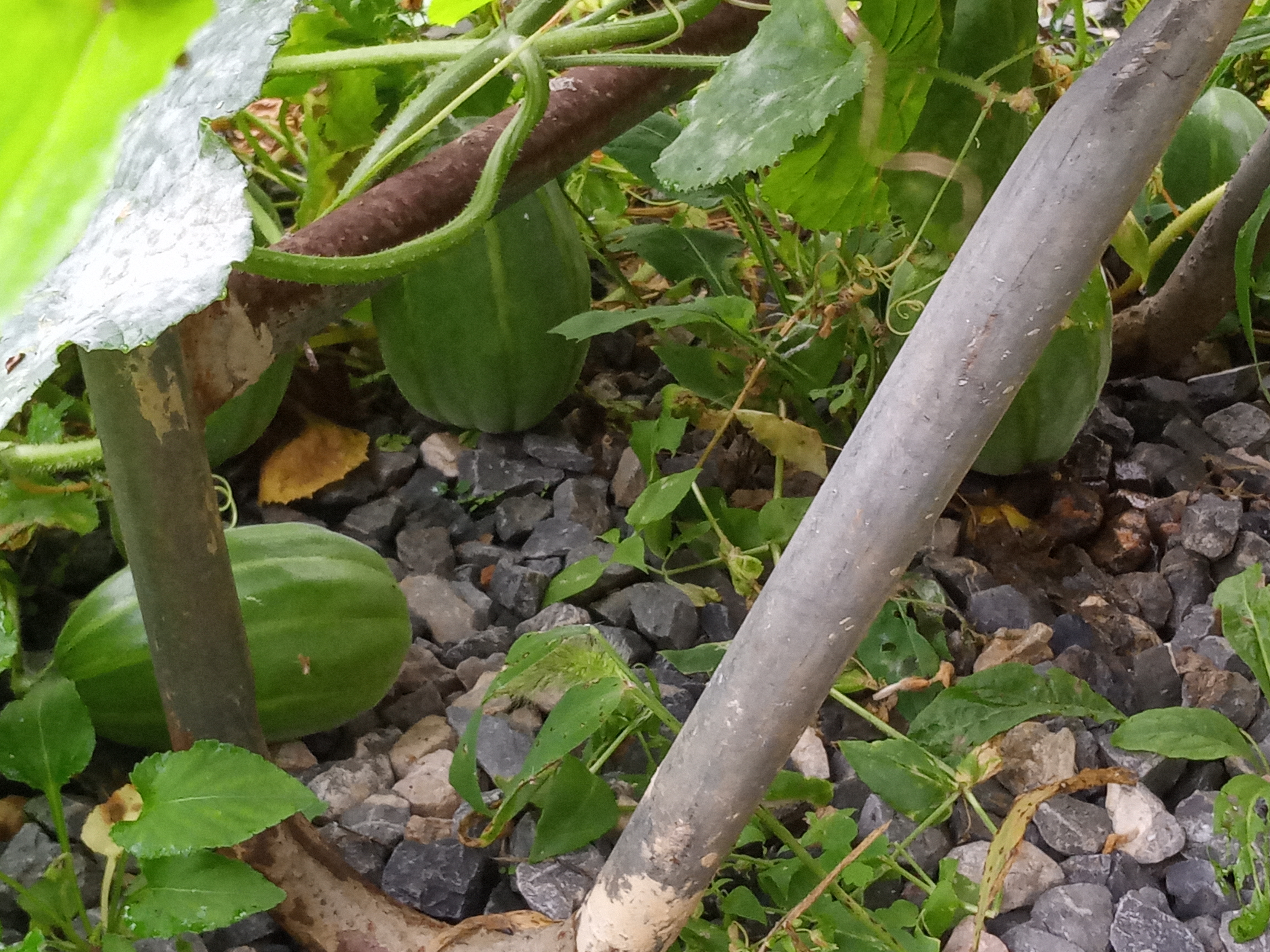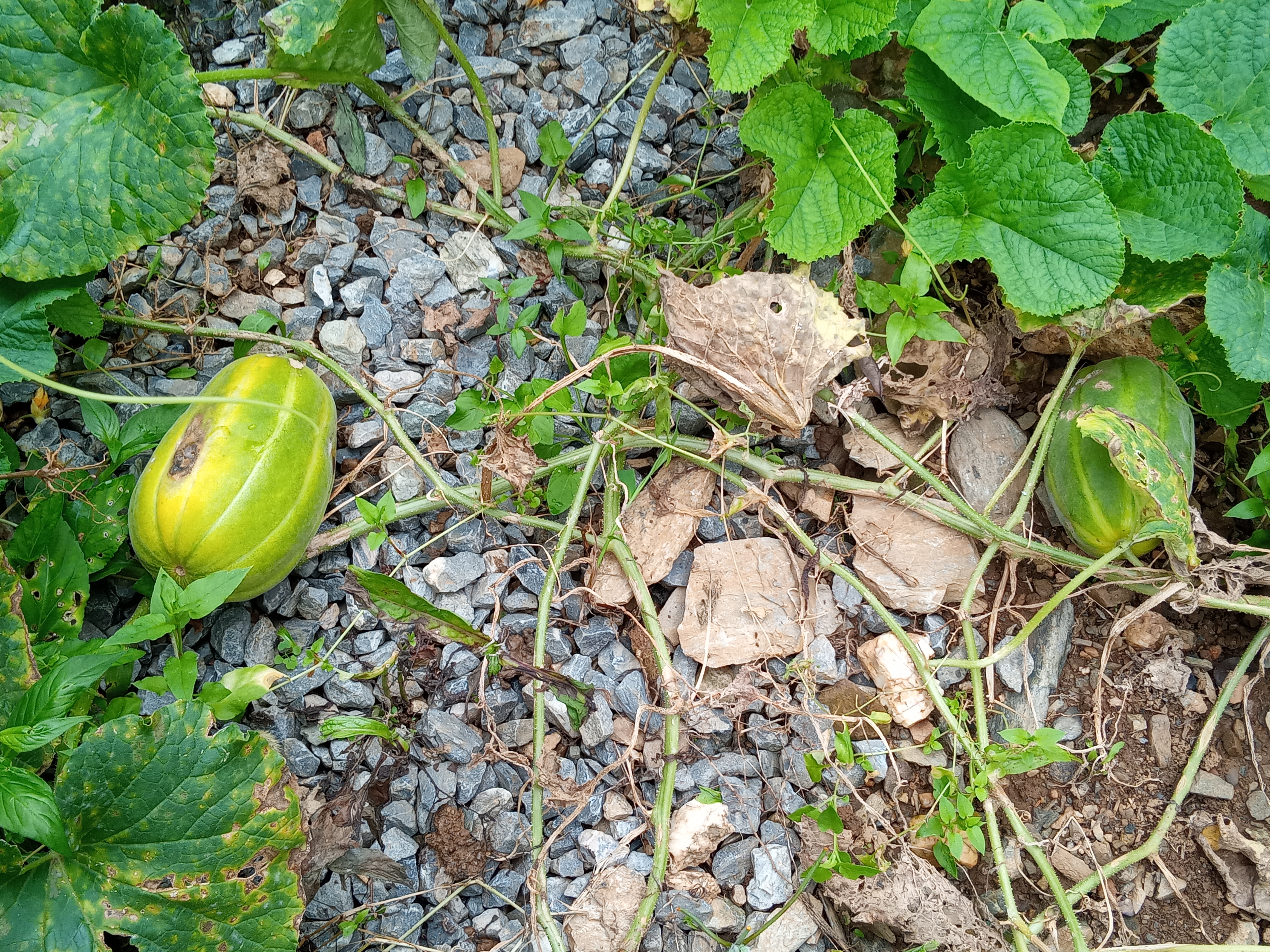 ♥사진은 부추를 자른지 이틀후 자란 모습과 장마철에 자라고 있는 참외 4개. 위가 썩고 있지만 괜찮다. 토마토 맛이 덜하지만 잡초와 씨름한다.